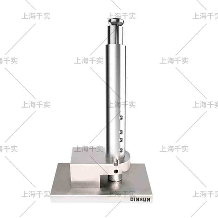 纽扣撞击强力测试仪可检测塑钮、胶钮的抗撞击阻力。将质量为0.84kg(29.5oz)重物从67mm(2.625英寸)或其他规定高度(至多200mm(8英寸))落下,以钮扣的破裂程度作为考核。